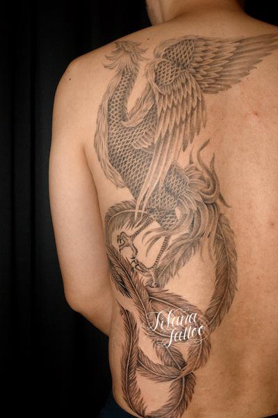鳳凰のタトゥー タトゥー 一覧 > Tattoo by Mica 2016.12.13 繊細なデザインに仕上げた鳳凰のタトゥー|刺青作品です。所要時間の目安は20時間前後、4回前後で完成するサイズです。 Style メンズ 和柄 Motif 鳳凰 Size B5サイズ以上 Body parts 背中