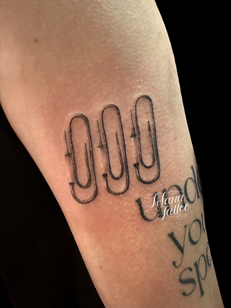 三連安全ピンのタトゥー タトゥー 一覧 > Tattoo by GAGA 2024.11.07 安全ピンのモチーフをデザインしたファインライン・タトゥー。所要時間の目安は2時間前後です。 Style ファインライン メンズ ガールズ 洋柄 Size タバコサイズ Body parts 腕