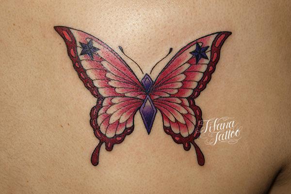 ピンクの蝶のタトゥー タトゥー 一覧 > Tattoo by Mica 2015.01.02 ピンク色の蝶を女性向けにデザインしたタトゥー|刺青作品です。完成までの所要時間の目安は2時間前後です。 Style ガールズ 洋柄 Motif 昆虫 Tattoo Tag 蝶 Size タバコサイズ Body parts 肩