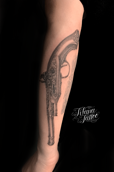 アンティークのピストル・タトゥー タトゥー 一覧 > Tattoo by Mica 2023.04.01 アンティークのピストル|銃をモチーフにしたタトゥー。所要時間の目安は5時間半前後です。 Style メンズ チカーノ・ブラック&グレイ 洋柄 Motif 武器 Tattoo Tag 銃、ピストル Size B5サイズ以上 Body parts 腕