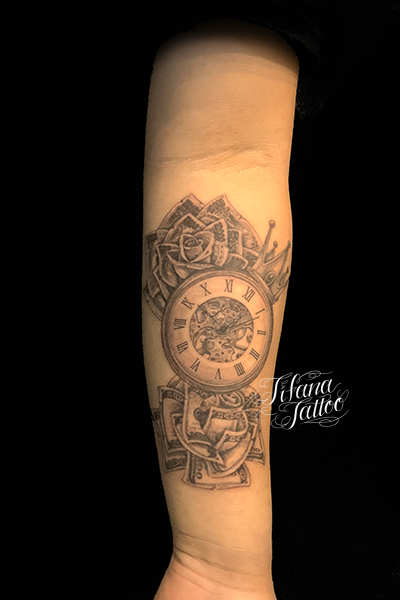 懐中時計|マネーローズ|王冠のタトゥー タトゥー 一覧 > Tattoo by Mica 2021.11.19 懐中時計、マネーローズ、王冠をひとつのデザインにまとめたタトゥー。所要時間の目安は6時間前後です。 Style メンズ 洋柄 Motif アクセサリー Tattoo Tag マネーローズ 時計 王冠 Size CDジャケット Body parts 腕