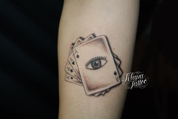 エースのフォーカード・タトゥー タトゥー 一覧 > Tattoo by Kaz 2015.01.14 トランプのエースのフォーカードをデザインしたラッキーアイテムのジャンルのタトゥー|刺青作品です。所要時間の目安は1時間半前後、1回で完成するサイズです。 Style メンズ 洋柄 Motif ラッキーアイテム Size タバコサイズ Body parts 腕