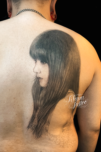 アイドルのポートレート・タトゥー タトゥー 一覧 > Tattoo by Kaz 2023.05.05 推しのアイドルの写真をファインラインでリアルに再現したポートレート・タトゥー。完成までの来店回数の目安は3回前後です。 Style メンズ チカーノ・ブラック&グレイ 洋柄 Motif ポートレイト Size B5サイズ以上 Body parts 肩 背中
