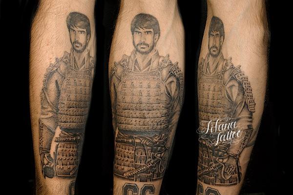 人物|鎧のポートレイトタトゥー タトゥー 一覧 > Tattoo by Kaz 2015.01.14 大切な方の顔写真をベースに繊細な鎧をデザインしたタトゥー|刺青作品です。所要時間の目安は10時間前後、2回から3回で完成するサイズです。 Style メンズ チカーノ・ブラック&グレイ Motif ポートレイト Size B5サイズ以上 Body parts 腕