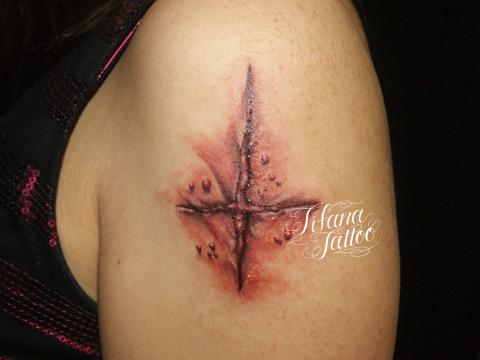 えぐれた皮膚のタトゥー タトゥー 一覧 > Tattoo by Kaz 2015.01.08 えぐれた皮膚をリアルにデザインしたタトゥー|刺青作品です。所要時間の目安は2時間前後、1回の施術で完成するサイズです。 Style ガールズ 洋柄 Size タバコサイズ Body parts 肩
