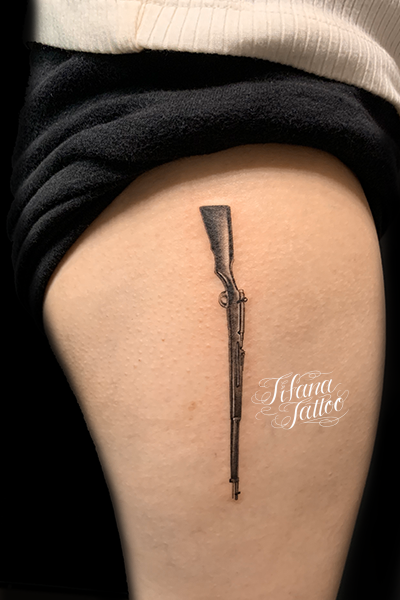 ライフルのファインライン・タトゥー タトゥー 一覧 > Tattoo by AKI 2023.01.22 ライフルのモチーフを繊細な技法でリアルに表現したファインライン・タトゥー。所要時間の目安は4時間前後です。 Style ファインライン ガールズ 洋柄 Motif 武器 Size iphoneサイズ Body parts 脚
