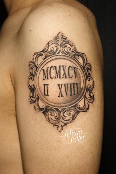 ローマ数字のタトゥー タトゥー 一覧 > Tattoo by Naoto 2016.02.22 バロック調の装飾デザインにローマ数字を合わせた肩の部位のタトゥー|刺青作品です。所要時間の目安は3時間前後、1回で完成するサイズです。 Style メンズ レタリング 洋柄 Motif 文字・数字 Size iphoneサイズ Body parts 肩