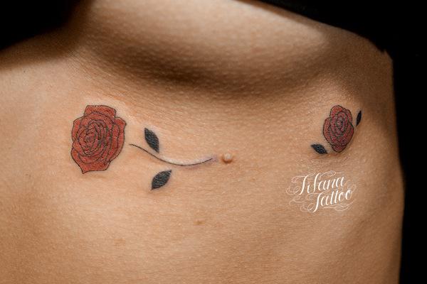 薔薇のガールズタトゥー タトゥー 一覧 > Tattoo by Mica 2019.07.08 胸下に二輪の赤い薔薇|バラのモチーフをデザインしたガールズタトゥーです。所用事時間の目安は1時間前後です。 Style ガールズ 洋柄 Motif 植物 Tattoo Tag 薔薇、ローズ Size タバコサイズ Body parts 胸
