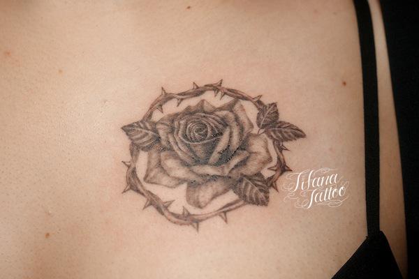 薔薇|荊のタトゥー タトゥー 一覧 > Tattoo by Mica 2019.11.25 薔薇|バラ、荊をひとつのデザインにまとめたガールズタトゥー。所要時間の目安は1時間半前後です。 Style ガールズ 洋柄 Motif 植物 Tattoo Tag 薔薇、ローズ Size タバコサイズ Body parts 胸
