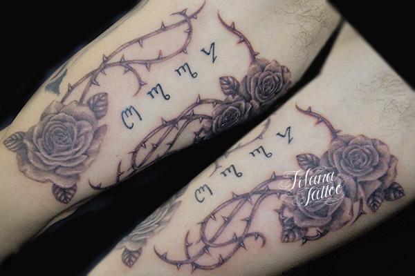 薔薇|荊棘のタトゥー タトゥー 一覧 > Tattoo by Mica 2015.01.14 薔薇のモチーフをデザインした植物のジャンルのタトゥー|刺青作品です。所要時間の目安は3時間前後、1回で完成するサイズです。 Style メンズ 洋柄 Motif 植物 Tattoo Tag 薔薇、ローズ Size CDジャケット Body parts 腕