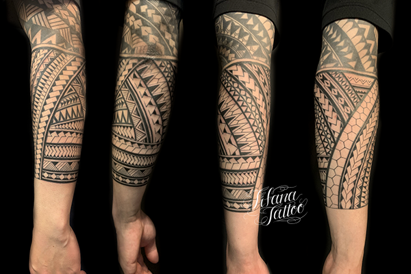 サモア系民族タトゥー タトゥー 一覧 > Tattoo by Mica 2023.09.09 サモア系のトライバルで埋め尽くしたタトゥー。肘下から手首までの完成までに3回〜4回の来店が必要です。 Style メンズ トライバル Size 7分~フルスリーブ Body parts 腕