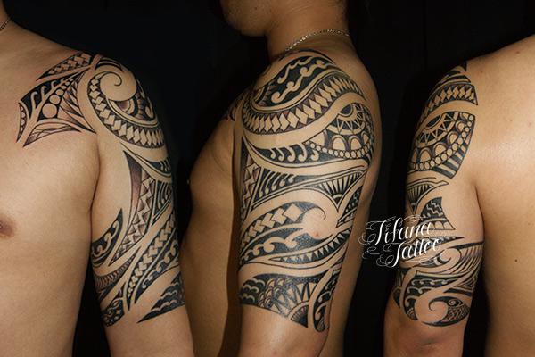 サモア・トライバルタトゥー タトゥー 一覧 > Tattoo by Mica 2015.01.07 サモアのトライバル柄をデザインしたタトゥー|刺青作品です。所要時間の目安は10時間前後、2回から3回の施術で完成可能なサイズです。 Style メンズ トライバル Size ハーフスリーブ Body parts 肩 腕