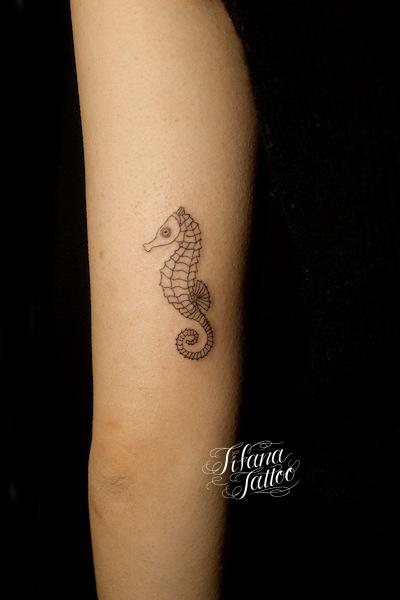タツノオトシゴのタトゥー タトゥー 一覧 > Tattoo by Kaz 2019.02.27 タツノオトシゴのモチーフをデザインしたラインアート・タトゥーです。所要時間の目安は1時間未満です。 Style ガールズ 洋柄 Motif 水の生き物 Size ワンポイント Body parts 腕