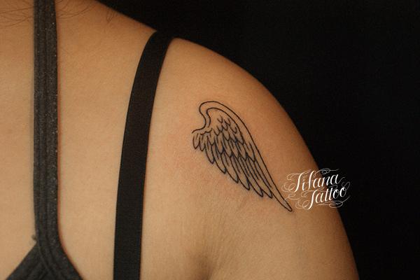 片翼のタトゥー タトゥー 一覧 > Tattoo by Mica 2015.01.06 片翼の翼のモチーフを輪郭のみで女性向けにデザインしたガールズタトゥーです。完成までの所要時間の目安は30分前後です。 Style ガールズ 洋柄 Motif 羽・翼 Size タバコサイズ Body parts 肩