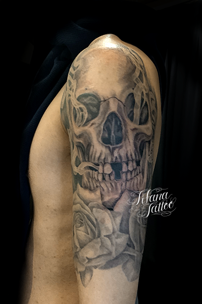スカルと薔薇のタトゥー タトゥー 一覧 > Tattoo by Mica 2021.02.15 スカル|ドクロ、薔薇|バラのモチーフをひとつのデザインにまとめたタトゥー。所要時間の目安は12時間前後です。 Style メンズ チカーノ・ブラック&グレイ 洋柄 Motif スカル 植物 Tattoo Tag 薔薇、ローズ Size ハーフスリーブ Body parts 腕