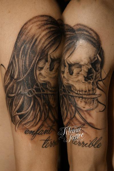 スカルのタトゥー タトゥー 一覧 > Tattoo by Kaz 2018.01.28 髪の毛の生えた女性スカルのモチーフをデザインしたタトゥー|刺青作品です。所要時間の目安は4時間前後です。 Style メンズ 洋柄 Motif スカル Tattoo Tag スカル・ドクロ Size CDジャケット Body parts 肩