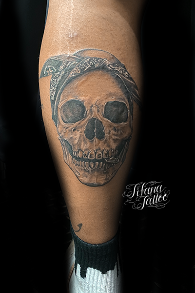 バンダナ|スカルのタトゥー タトゥー 一覧 > Tattoo by Naoto 2020.08.09 バンダナを巻いたスカルのモチーフをデザインしたファインラインタトゥー。所要時間の目安は6時間半前後です。 Style ファインライン メンズ チカーノ・ブラック&グレイ 洋柄 Motif スカル Size CDジャケット Body parts 脚