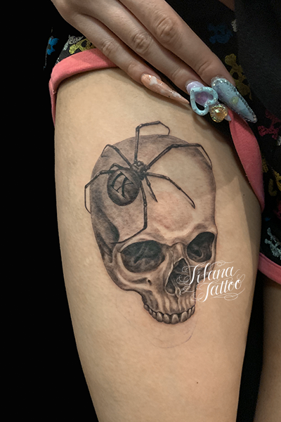 スカル|蜘蛛のタトゥー タトゥー 一覧 > Tattoo by Mica 2022.08.20 スカルと蜘蛛|クモのモチーフをひとつのデザインにまとめたタトゥー。所要時間の目安は4時間前後です。 Style メンズ 洋柄 Motif スカル 昆虫 Size CDジャケット Body parts 脚