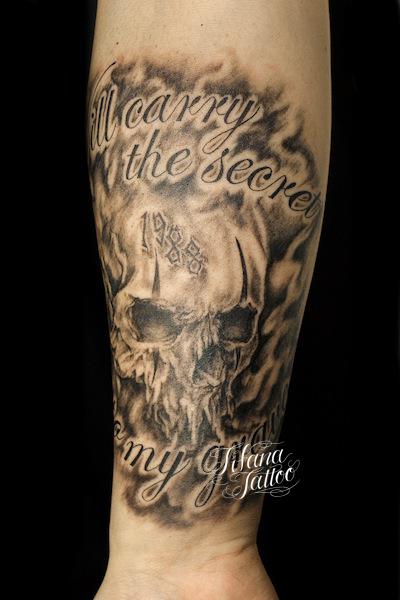 スカル|ドクロと文字のタトゥー タトゥー 一覧 > Tattoo by Kaz 2015.05.13 スカル|ドクロ、煙|スモーク、文字|レタリングをひとつのデザインにまとめた腕の部位のタトゥー|刺青作品です。所要時間の目安は7時間前後、1回で完成しました。 Style メンズ チカーノ・ブラック&グレイ 洋柄 Motif スカル Size B5サイズ以上 Body parts 腕
