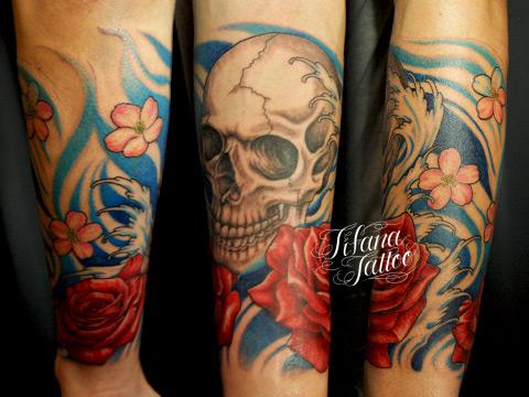スカル|バラ|サクラのタトゥー タトゥー 一覧 > Tattoo by Mica 2015.01.12 スカルのモチーフにバラ、桜、波をデザインしたタトゥー|刺青作品です。所要時間の目安は7時間前後、1回から2回で完成するサイズです。 Style メンズ 洋柄 Motif スカル Tattoo Tag 薔薇、ローズ Size B5サイズ以上 Body parts 腕