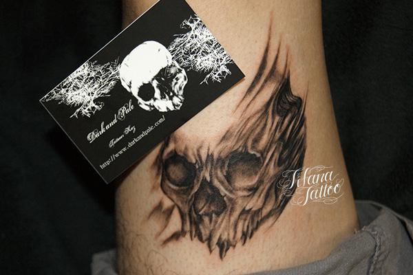 ドクロのタトゥー タトゥー 一覧 > Tattoo by Kaz 2014.12.30 カードサイズでデザインしたスカルのジャンルのタトゥー|刺青作品です。所要時間の目安は2時間前後で1日で完成しました。 Style メンズ チカーノ・ブラック&グレイ 洋柄 Motif スカル Size タバコサイズ Body parts 脚