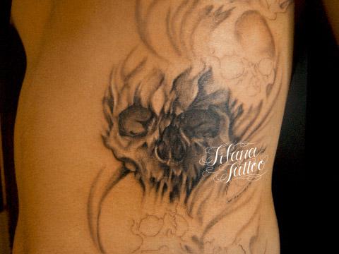 Skull Tattoo タトゥー 一覧 > Tattoo by Kaz 2015.01.09 スカル|ドクロのモチーフをデザインしたタトゥー|刺青作品です。所要時間の目安は4時間前後、製作途中の作品です。 Style メンズ チカーノ・ブラック&グレイ 洋柄 Motif スカル Size B5サイズ以上 Body parts 腹