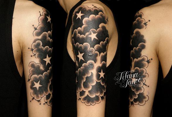 夜空のタトゥー タトゥー 一覧 > Tattoo by Mica 2015.01.27 夜空のイメージを雲・星のモチーフでデザインした風景のタトゥー|刺青作品です。所要時間の目安は5時間前後、1回から2回で完成するサイズです。 Style メンズ 洋柄 Motif 宇宙 Tattoo Tag 風景 Size ハーフスリーブ Body parts 腕