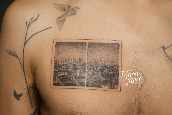 思い出の風景タトゥー タトゥー 一覧 > Tattoo by Mica 2019.11.15 自宅の窓から見える景色をモチーフにした思い出の風景タトゥー。所要時間の目安は3時間半前後です。 Style メンズ 洋柄 Tattoo Tag 風景 Size CDジャケット Body parts 胸
