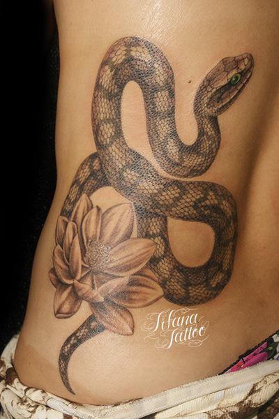 蛇と花のタトゥー タトゥー 一覧 > Tattoo by Mica 2020.04.04 蛇|ヘビ、花|植物のモチーフをひとつのデザインにまとめたタトゥー|刺青作品。所要時間の目安は6時間前後です。 Style ガールズ 洋柄 和柄 Motif 爬虫類 植物 Tattoo Tag 蛇、ヘビ Size B5サイズ以上 Body parts 腰