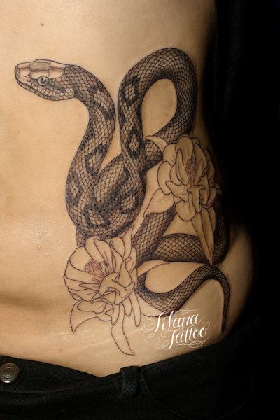 蛇|オダマキの花のタトゥー|製作中 タトゥー 一覧 > Tattoo by Mica 2015.04.08 お腹の部位に蛇|ヘビ、オダマキの花のモチーフをひとつのデザインにまとめた製作中のタトゥー|刺青作品です。 Style ガールズ 洋柄 和柄 Motif 爬虫類 Tattoo Tag 蛇、ヘビ Size B5サイズ以上 Body parts 腹