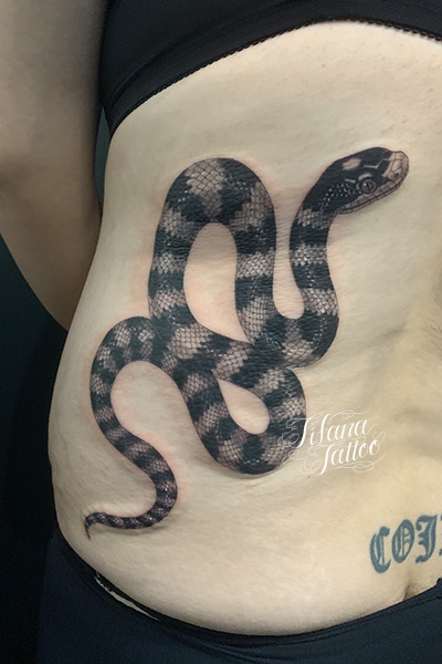 蛇のファインライン タトゥー タトゥー 一覧 > Tattoo by Mica 2021.05.13 蛇|ヘビのモチーフをデザインした腰の部位のファインライン ・タトゥー。所要時間の目安は7時間前後です。 Style ファインライン ガールズ チカーノ・ブラック&グレイ 洋柄 Motif 爬虫類 Tattoo Tag 蛇、ヘビ Size B5サイズ以上 Body parts 腰
