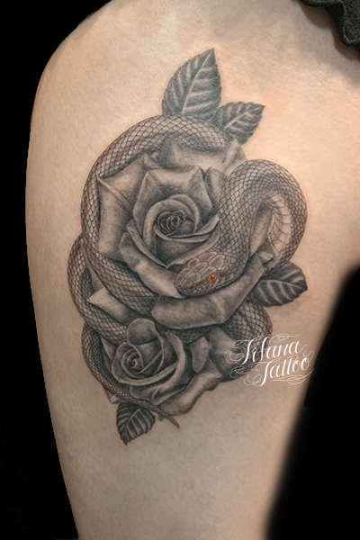 薔薇|蛇のファインライン・タトゥー タトゥー 一覧 > Tattoo by Mica 2023.03.20 薔薇|バラに巻きついた蛇|ヘビをデザインしたファインライン・タトゥー。所要時間の目安は6時間前後です。 Style ファインライン ガールズ チカーノ・ブラック&グレイ 洋柄 Motif 爬虫類 植物 Tattoo Tag 薔薇、ローズ 蛇、ヘビ Size CDジャケット Body parts 肩