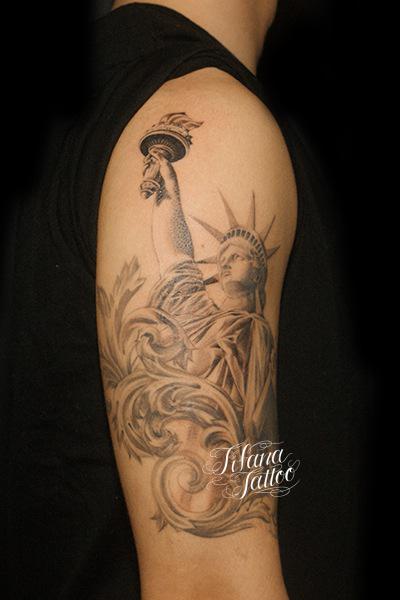 自由の女神のタトゥー タトゥー 一覧 > Tattoo by Naoto 2020.05.10 下から見上げたアングルの自由の女神がモチーフのタトゥー。所要時間の目安は5時間前後です。 Style メンズ チカーノ・ブラック&グレイ 洋柄 Motif 女神 Size B5サイズ以上 Body parts 腕