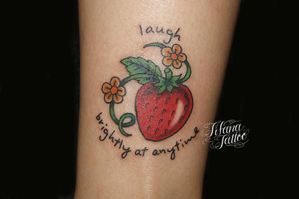 苺のガールズタトゥー タトゥー 一覧 > Tattoo by Mica 2015.01.04 苺|イチゴのモチーフに手書き風の文字を女性向けにデザインしたガールズタトゥーです。完成までの所要時間の目安は1時間15分前後です。 Style ガールズ 洋柄 Motif 植物 Tattoo Tag イチゴ Size タバコサイズ Body parts 足