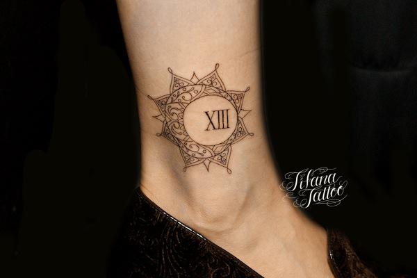 太陽|月|ローマ数字のタトゥー タトゥー 一覧 > Tattoo by Naoto 2017.04.25 太陽、月、ローマ数字をひとつのデザインにまとめた足首の部位のタトゥー|刺青作品です。所要時間の目安は1時間前後です。 Style ガールズ 洋柄 Motif 文字・数字 宇宙 図形 Tattoo Tag ローマ数字 太陽 月 Size タバコサイズ Body parts 足