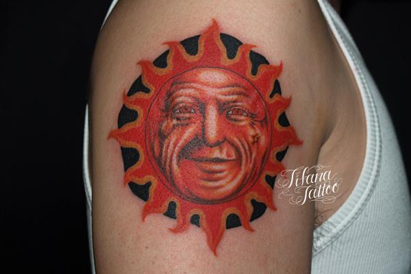 太陽の顔のタトゥー タトゥー 一覧 > Tattoo by Mica 2015.01.07 太陽のモチーフに顔をデザインしたタトゥー|刺青作品です。所要時間の目安は3時間前後、1回の施術で完成するサイズです。 Style メンズ 洋柄 Motif 宇宙 Tattoo Tag 太陽 Size iphoneサイズ Body parts 肩