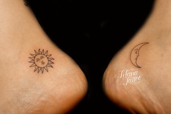 太陽|月のワンポイントタトゥー タトゥー 一覧 > Tattoo by Mica 2019.07.06 太陽と月のモチーフをコインサイズでシンメトリーな構図にデザインしたガールズタトゥーです。所要時間の目夜は1時間未満です。 Style ガールズ 洋柄 Motif 宇宙 シンメトリー Tattoo Tag 太陽 月 Size ワンポイント Body parts 足