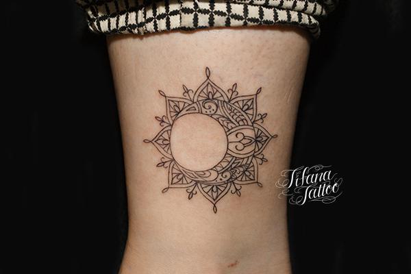 Sun/Moon Tattoo タトゥー 一覧 > Tattoo by Naoto 2015.01.18 太陽と月のモチーフをひとつのデザインにまとめたヘナ・ペイズリー柄のタトゥー|刺青作品です。所要時間の目安は1時間前後、1回で完成するサイズです。 Style ガールズ 洋柄 Motif ヘナ・ペイズリー柄 宇宙 Tattoo Tag 太陽 月 Size タバコサイズ Body parts 足