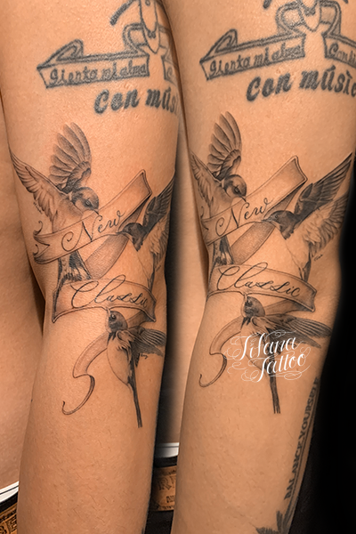 燕|文字のファインライン・タトゥー タトゥー 一覧 > Tattoo by AKI 2022.05.06 燕|ツバメ、文字|レタリングを繊細な技法で表現したファインライン・タトゥー。所要時間の目安は6時間前後です。 Style ファインライン メンズ 洋柄 Motif 鳥 Size CDジャケット Body parts 腕
