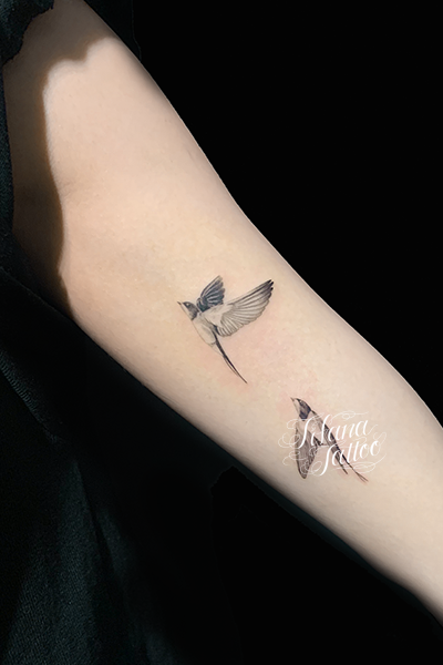 ツバメのファインライン・タトゥー タトゥー 一覧 > Tattoo by AKI 2022.09.07 2羽のツバメ|燕のモチーフを繊細な技法で表現したファインライン・タトゥー。所要時間の目安は3時間半前後です。 Style ファインライン メンズ 洋柄 Motif 鳥 Tattoo Tag 燕、ツバメ Size タバコサイズ Body parts 腕
