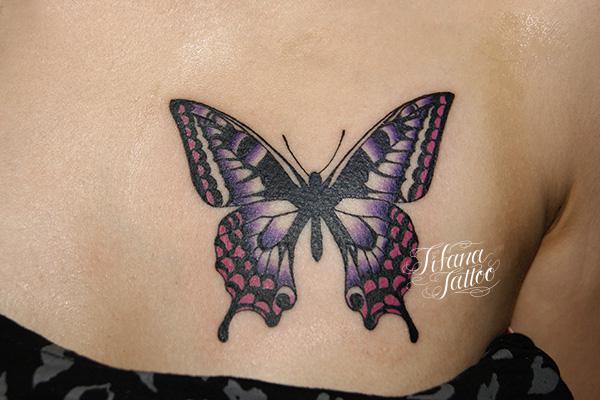 アゲハ蝶のタトゥー タトゥー 一覧 > Tattoo by Mica 2015.01.17 女性の胸の部位にアゲハ蝶のモチーフをデザインした昆虫のジャンルのガールズタトゥーです。所要時間の目安は2時間前後、1回でするです。 Style ガールズ 洋柄 Motif 昆虫 Tattoo Tag 蝶 Size iphoneサイズ Body parts 胸