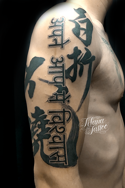 漢字とサンスクリット語のレタリングタトゥー タトゥー 一覧 > Tattoo by Yosh 2021.06.27 何度くじけても志をまげないという意味の「百折不撓」を書道スタイルでサンスクリット語を組み合わせたレタリングタトゥー。所要時間の目安は6時間前後です。 Style メンズ レタリング 和柄 Motif 文字・数字 Size ハーフスリーブ Body parts 腕
