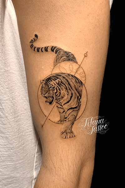 虎と幾何学模様のファインライン・タトゥー タトゥー 一覧 > Tattoo by AKI 2022.08.25 虎|トラ|タイガーのモチーフにジオメトリックなデザインを組み合わせたファインライン・タトゥー。所要時間の目安は8時間前後です。 Style ファインライン メンズ 洋柄 Motif 動物 図形 Tattoo Tag 虎 Size iphoneサイズ Body parts 腕
