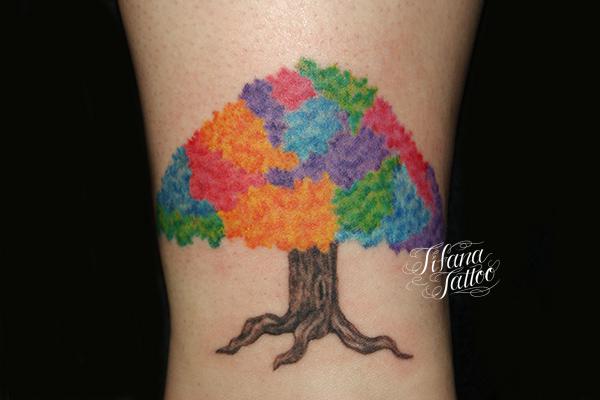 カラフルな樹木のタトゥー タトゥー 一覧 > Tattoo by Mica 2015.01.04 様々なカラーを使って女性向けにデザインした樹木のタトゥーです。完成までの所要時間の目安は3時間前後です。 Style ガールズ 洋柄 Motif 植物 Tattoo Tag 樹木 Size CDジャケット Body parts 脚