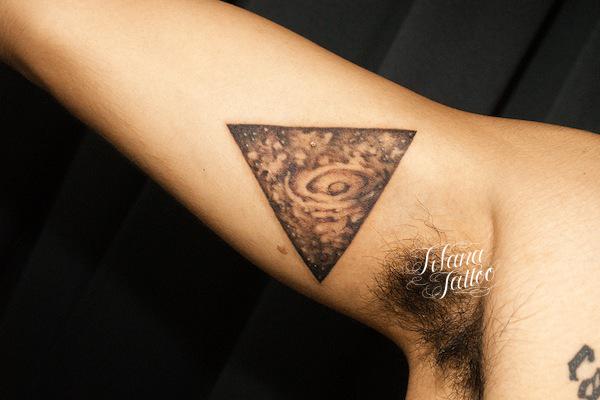 Triangle Tattoo タトゥー 一覧 > Tattoo by Kaz 2015.12.06 三角形の図形の中に宇宙をイメージしたデザインのタトゥー|刺青作品です。腕の内側|脇の下に近い部位です。所要時間の目安は2時間前後です。 Motif 宇宙 図形 Tattoo Tag 三角形 Size タバコサイズ Body parts 腕