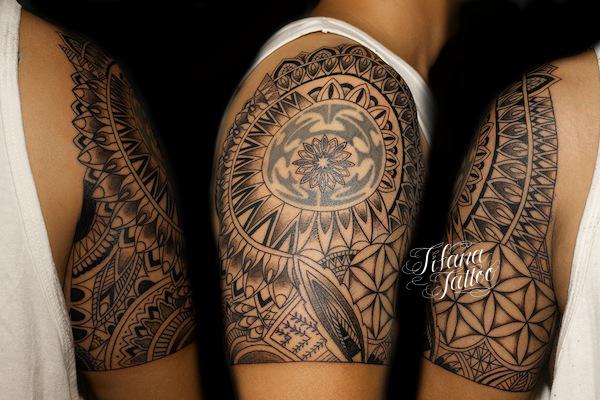 民族柄のトライバルタトゥー タトゥー 一覧 > Tattoo by Mica 2015.11.15 民族柄のトライバルでタッチアップした肩の部位のタトゥー|刺青作品です。所要時間の目安は8時間前後、1回から2回で完成するサイズです。 Style メンズ トライバル Size B5サイズ以上 Body parts 肩