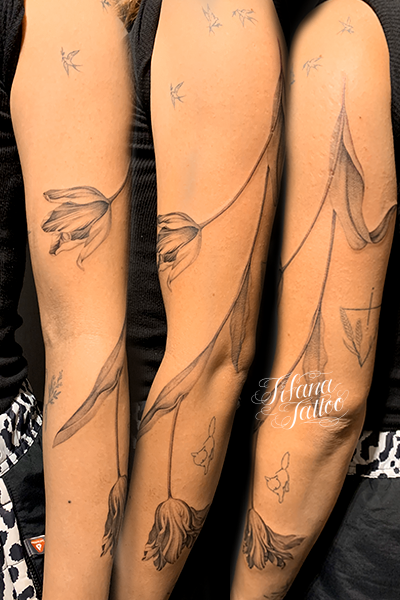 チューリップのファインライン・タトゥー タトゥー 一覧 > Tattoo by AKI 2023.07.19 チューリップのモチーフを腕の流れに合わせてデザインしたファインライン・タトゥー。所要時間の目安は6時間前後です。 Style ファインライン ガールズ 洋柄 Motif 植物 Tattoo Tag チューリップ Size B5サイズ以上 Body parts 腕