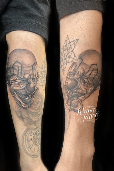 TWO FACE TATTOO タトゥー 一覧 > Tattoo by Kaz 2023.09.26 TWO FACE|ツーフェイスのモチーフをデザインしたチカーノ・タトゥー。完成までの来店回数の目安は2回です。 Style メンズ チカーノ・ブラック&グレイ 洋柄 Tattoo Tag ツーフェイス Size B5サイズ以上 Body parts 腕