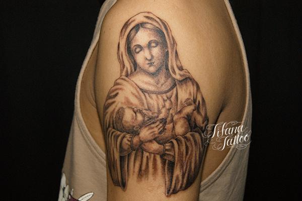 聖母子のタトゥー タトゥー 一覧 > Tattoo by Mica 2015.01.06 聖母子のモチーフをデザインしたタトゥー|刺青作品です。完成までの所要時間の目安は3時間前後、1回の施術で完成するサイズです。 Style メンズ チカーノ・ブラック&グレイ 洋柄 Motif 世界の神様 Tattoo Tag 聖母マリア Size CDジャケット Body parts 肩