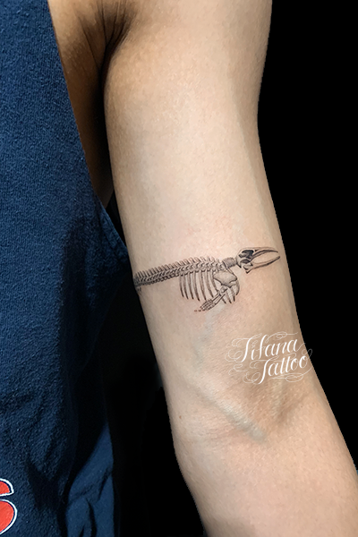 シロナガスクジラの骨のタトゥー タトゥー 一覧 > Tattoo by AKI 2022.04.22 シロナガスクジラの骨|スカルを極細の針で繊細に表現したファインライン・タトゥー。所要時間の目安は4時間半前後です。 Style ファインライン メンズ 洋柄 Motif スカル 水の生き物 Tattoo Tag 鯨 Size iphoneサイズ Body parts 腕